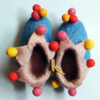 Felt is a mass of matted raw lamb's wool. Such wool is in raw form is carded and then dyed into different natural colors as desired in different forms for the final product. The type of dye usually used is Swiss dye. Felt products are purely made by shaping the raw wool with soap and water and human hand pressure, no chemicals are used during this process. Thus shaped product is dried under the sun. Due to its unique manufacturing process, any desired shape can be created. Washing instruction for all felt product All the felt products are carefully hand washed with soap or normal detergent powder. And all the products need to be showed in the sun in its natural shape by stretching by hand. Felt products are with different sizes and colors.